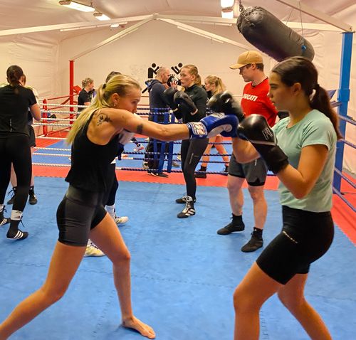 Slag og svette: Hos Sportsklubben av 1909 har Christina utviklet mål utenfor løpingen. I bokseringen får hun bruk for styrke i både bein og armer. (Foto: privat)