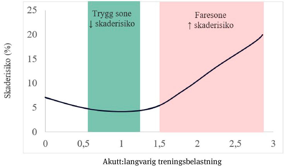 All økning av trening gir ikke samme skaderisiko. Total belastning utgjøres av både volum, intensitet og frekvens på treningen, samt eventuelle andre aktiviteter man driver med. Vi kan derfor ikke si at det er høy treningsbelastning i seg selv som øker skaderisikoen, men heller hvordan treningsmengde og intensitet styres.
